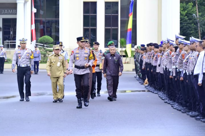 JAMBI | Go Indonesia.id – Kepolisian Daerah (Polda) Jambi menggelar apel gelar pasukan Operasi Ketupat 2025 pada Kamis (20/3) di Lapangan Hitam Mapolda Jambi. Apel ini dipimpin langsung oleh Kapolda Jambi, Irjen Pol Krisno Halomoan Siregar, serta dihadiri Gubernur Jambi Al Haris, Forkopimda dan berbagai pihak terkait.